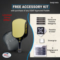 Hybrid shape for a paddle that perfectly balances the power of an elongated paddle with the quickness of a standard shaped paddle. Quickly go from offense to defense.